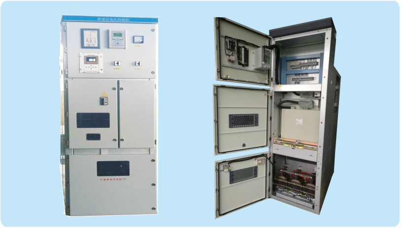 針對如此復(fù)雜的系統(tǒng),難以孤立的使用某種或某幾種過電壓保護(hù)裝來抑制各種類型的系統(tǒng)過電壓,且這些不同廠家生產(chǎn)的過電壓保護(hù)產(chǎn)品,因保護(hù)特性不能相互匹配,而無法徹底有效的抑制系統(tǒng)過電壓。針對目前中壓系統(tǒng)過電壓防治的現(xiàn)狀,我公司研制生產(chǎn)了系統(tǒng)過電壓抑制柜/聚優(yōu)柜,簡稱抑制柜/聚優(yōu)柜,型號AYTYG-Y/J,該柜可消除系統(tǒng)中過電壓保護(hù)元件及裝罝的保護(hù)死區(qū),優(yōu)化系統(tǒng)過電壓的保護(hù)特性。