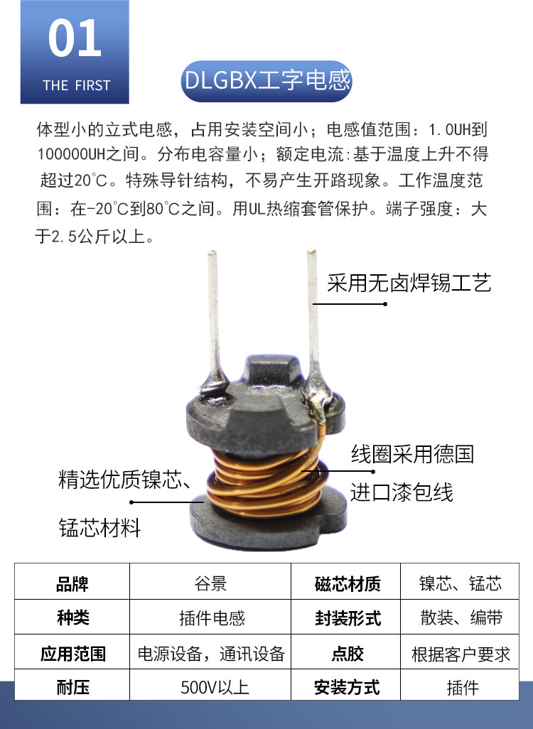 DLGBX工字電感:尺寸:可依客戶要求定制;感量:1uH-100mH;精度:J級(±10%)、K級(±10%)、M級(±20%);電流量:1mA-20A(可定制);特點:小體積,高儲能;適用于:電視、電源供應(yīng)器、LED照明等。詳情咨詢:0512-65368862。工字電感,工字電感廠家,工字電感0406,工字電感0608,工字電感0810,工字電感0912,工字電感1010,工字電感1012,屏蔽工字電感,47uh工字電感,33uH工字電感,220uH工字電感,工字電感生產(chǎn)廠家,電感定制,屏蔽工字電感,杭州工字電感,南京工字電感