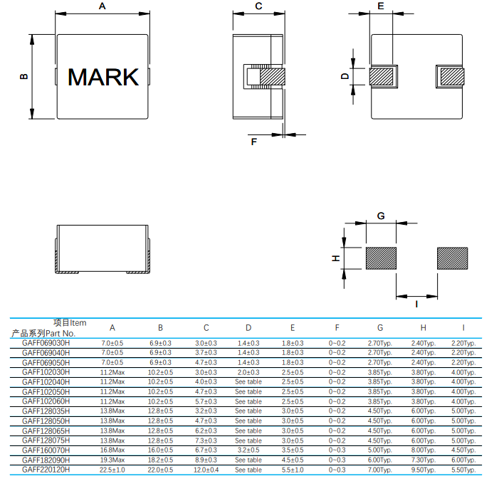 一:扁平線圈電感GAFF-H 產(chǎn)品特征1.符合環(huán)保要求2.扁平線繞線結(jié)構(gòu),超低內(nèi)阻3.超大電流承載能力,優(yōu)異的熱穩(wěn)定性4.精準阻抗有效抑制電磁干擾二:扁平線圈電感產(chǎn)品應用1. 高電流要求驅(qū)動電路濾波2.電源電路直流-直流轉(zhuǎn)換三:扁平線圈電感命名方式GAFF069030HMT1R0四:扁平線圈電感結(jié)構(gòu)及電氣原理五:扁平線圈電感封裝尺寸規(guī)格:六、詳細規(guī)格書下載如下: