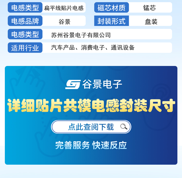 一、扁平線貼片電感GPQF-S 系列產品特性:1、扁平線繞線結構,超低內阻2、超大電流承載能力,優(yōu)異的熱穩(wěn)定性3、安裝方式靈活,兼容PCB內嵌元件工藝二、產品應?:1、?電流要求驅動電路濾波2、升壓或降壓電源電路轉換器三、封裝尺寸列表:
