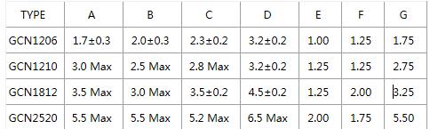 貼片功率電感GCN封裝尺寸列表: